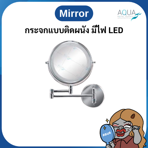 Cosmetic mirror with LED Lamp & Plug กระจกสำหรับแต่งหน้าแบบติดผนัง มีไฟ LED พร้อมปลั๊ก