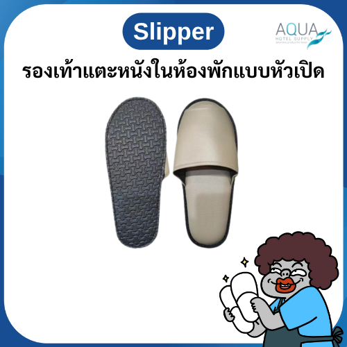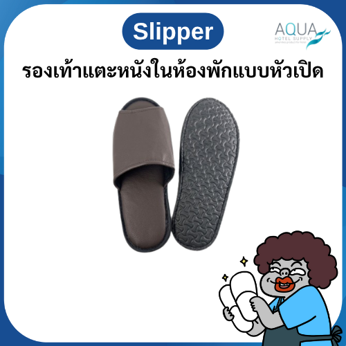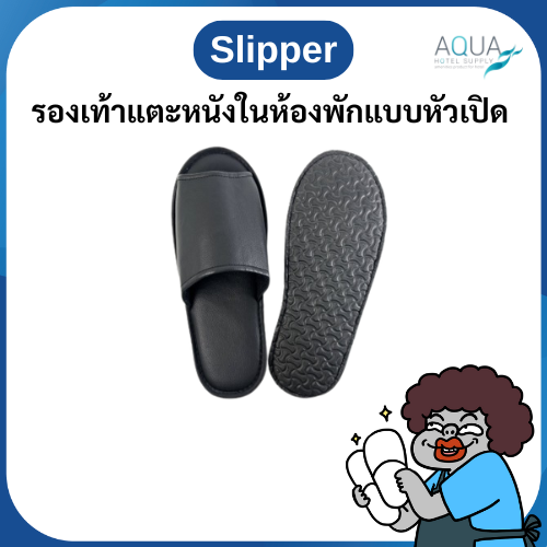 Leather slipper open toe รองเท้าแตะหนังในห้องพักแบบหัวเปิด